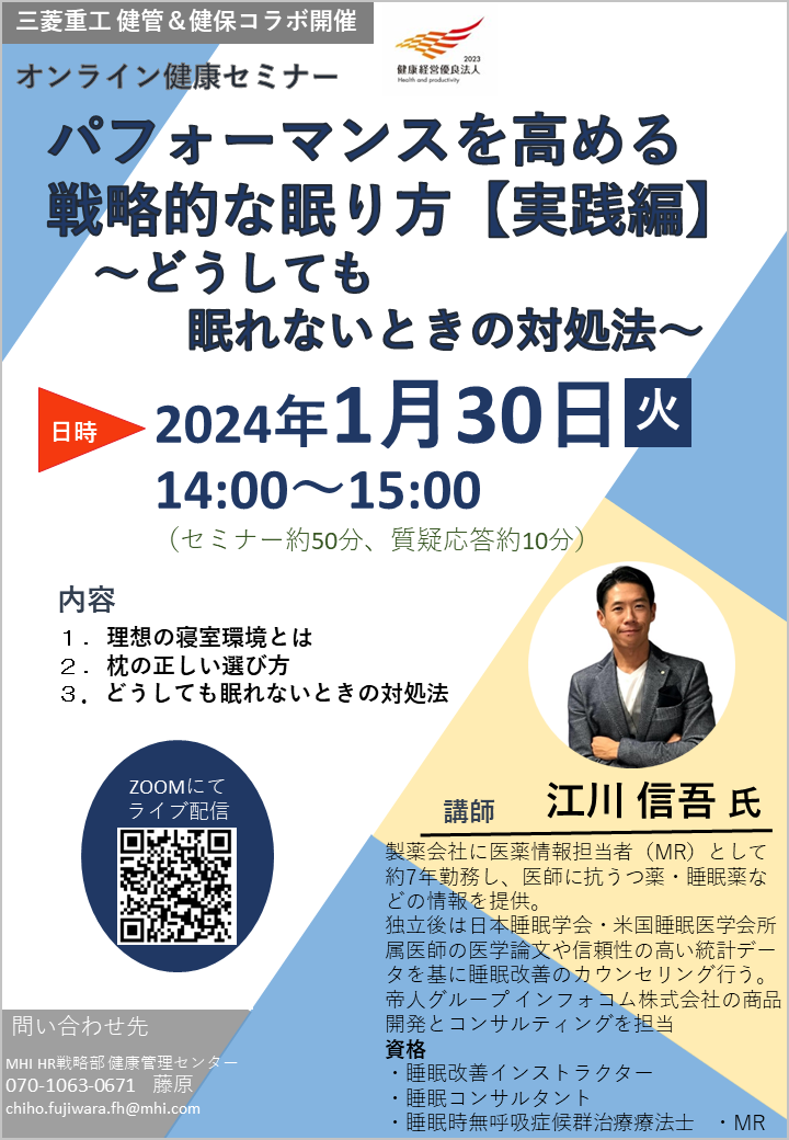 - 【三菱重工 健管&健保コラボセミナー⑥】睡眠セミナー 開催