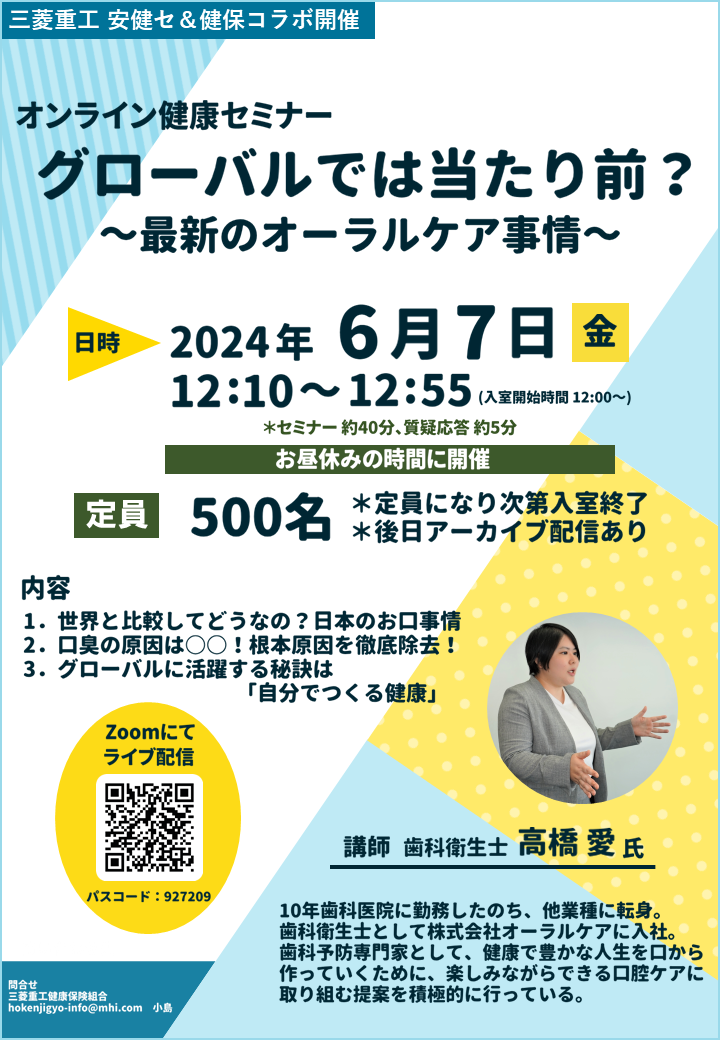 - 【三菱重工 安健セ&健保コラボセミナー②】お昼休み開催!オーラルケアセミナー