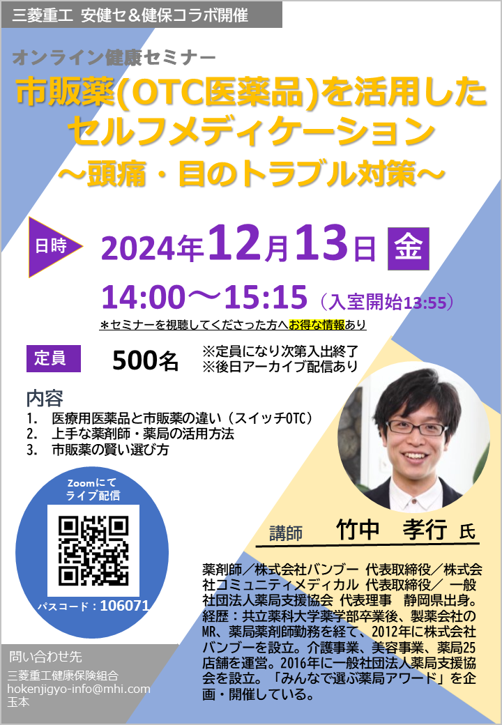 - 【三菱重工 安健セ&健保コラボセミナー⑦】お薬セミナー開催