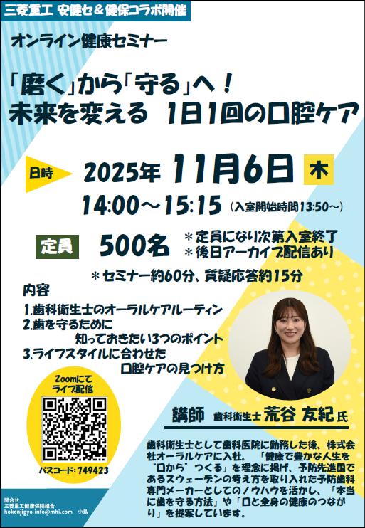 - 【三菱重工 安健セ&健保コラボセミナー⑤】オーラルケアセミナーPartⅡの開催