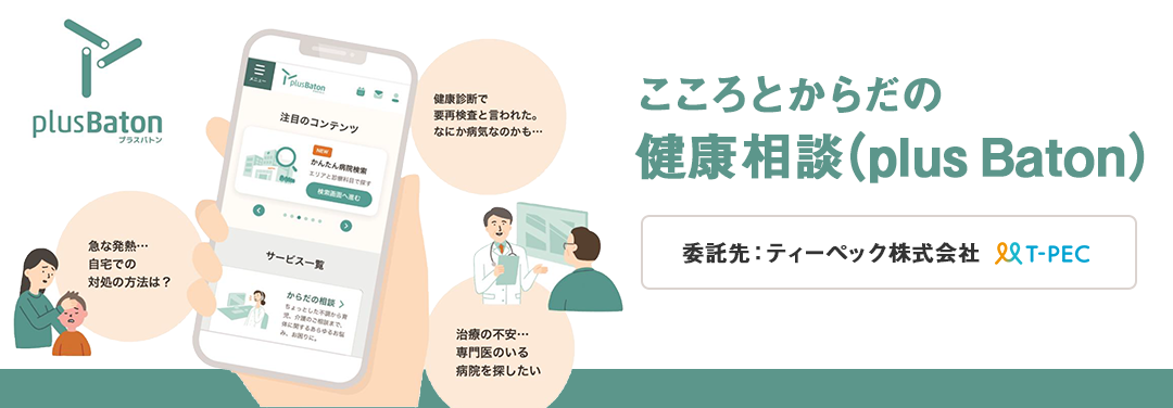 当健保組合ではこころとからだの相談窓口として、電話での相談に加え、チャットでの相談や病院検索など、無料で利用できる健康相談専用サイト「plus Baton」を開設しています。小さな不安でもお気軽にご相談ください。