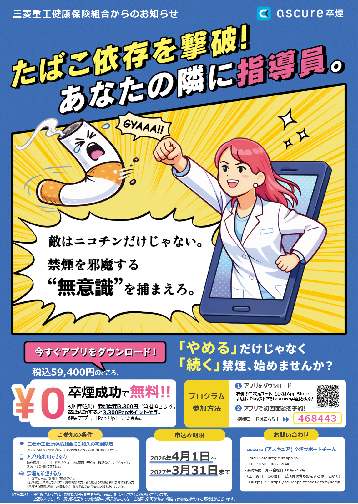 - 【お知らせ】令和8(2026)年度卒煙プログラムのご案内